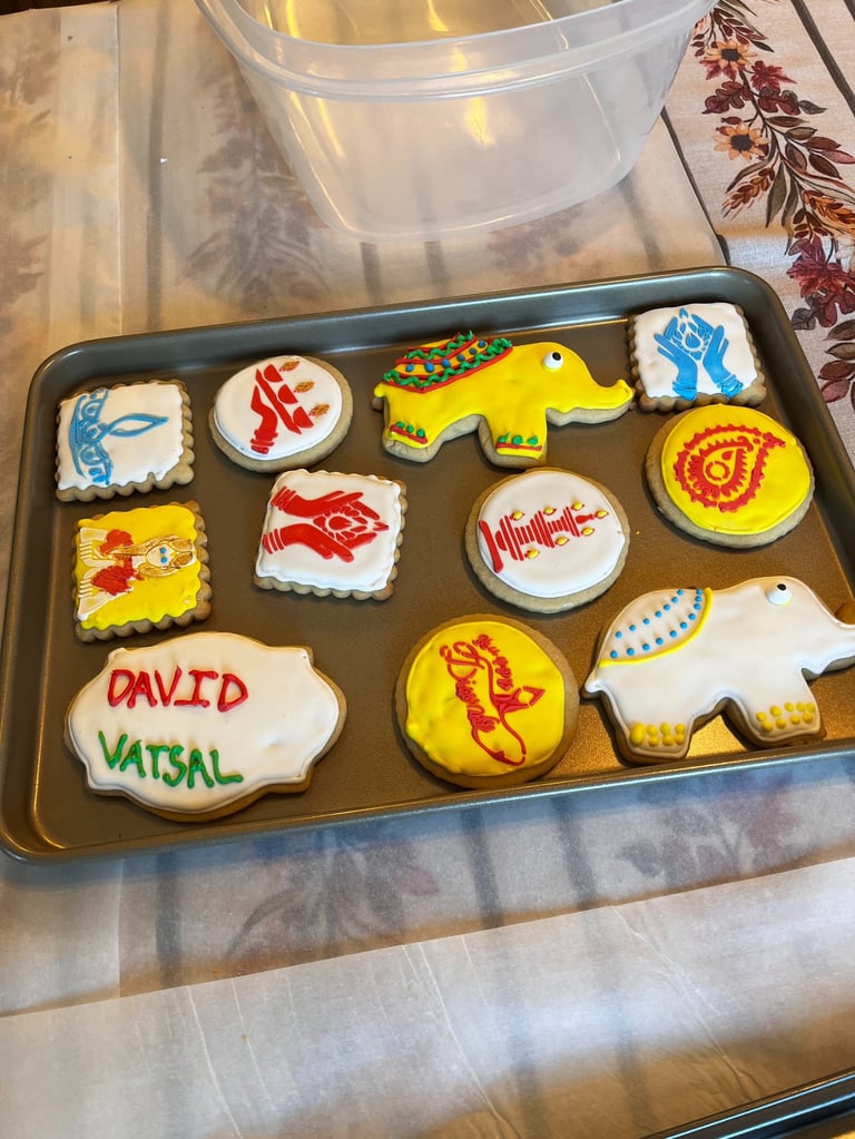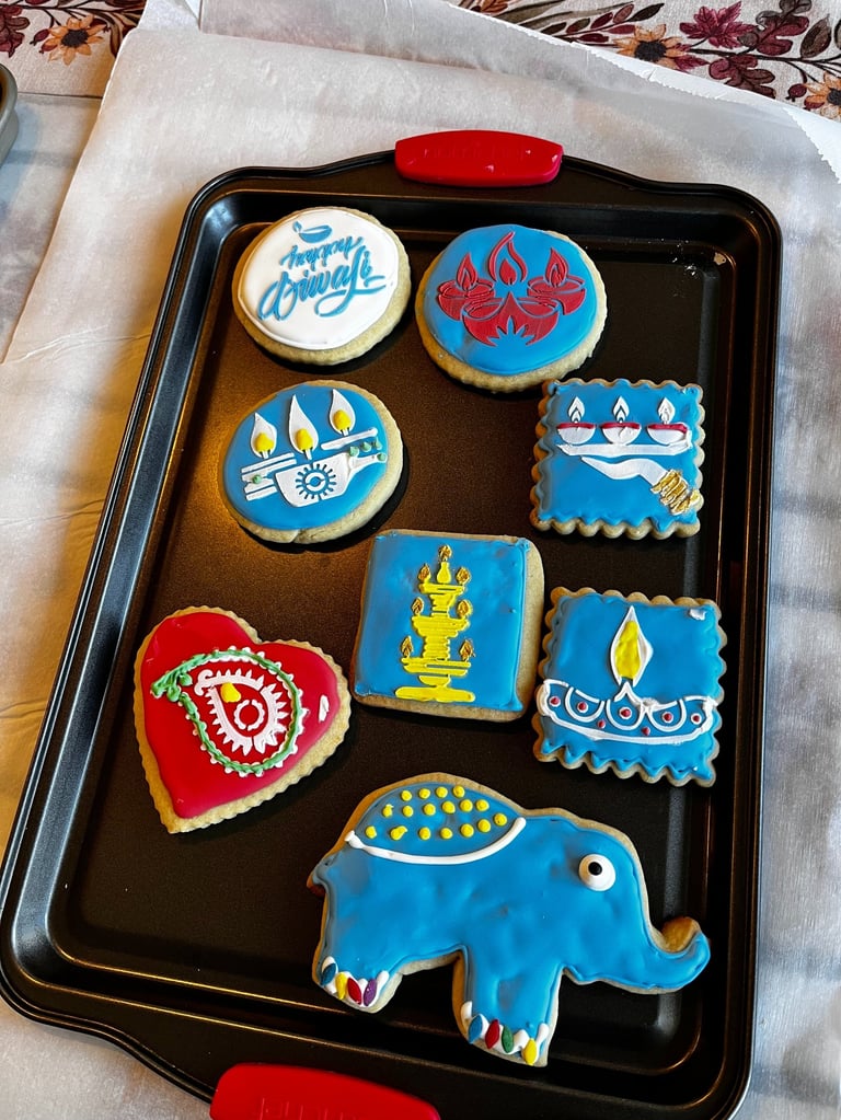 As you can see in the pictures, these cookies are adorned with colorful icing and festive images that reflect the spirit of Diwali. I made them in various shapes—some are elephants, others are squares, and a few are simply delightful circles. Each cookie is infused with flavors like vanilla and rosewater.