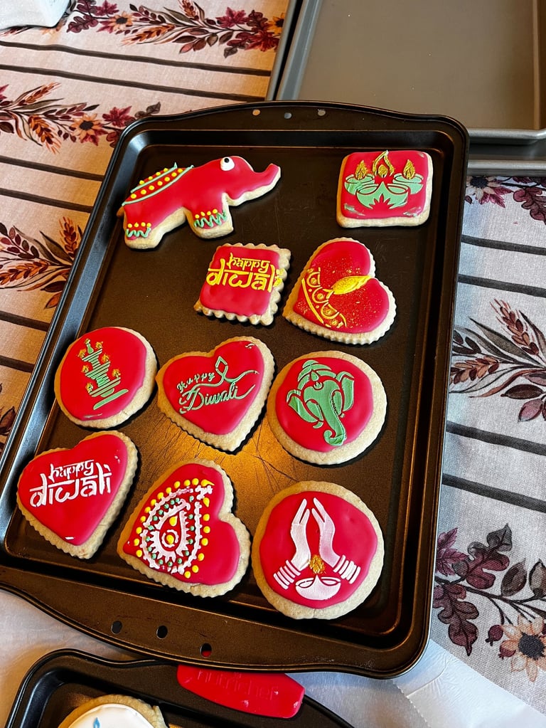 My son is married to someone from India and they celebrate this holiday. This year, I decided to add a personal touch to their Diwali celebrations by baking a batch of delightful cookies. Baking is one of my favorite pastimes, and what better occasion to channel that energy into making sweet treats that symbolize the joy of the festival? With a pinch of love and a sprinkle of festive cheer, I whipped up some mouthwatering cookies that not only look beautiful but taste even better!