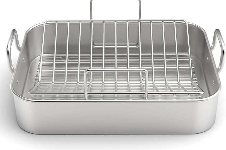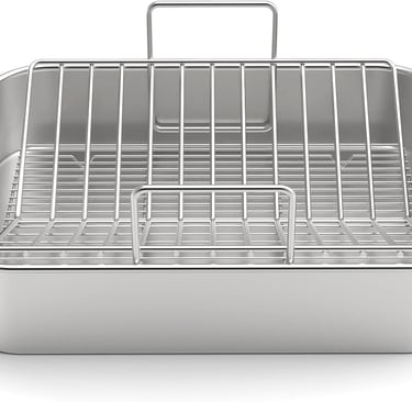 I cook a big 20 lb turkey for Thanksgiving every year and I got sick of using the disposable aluminum pans because more than once, my turkey almost slipped off the cookie sheet and onto the floor. This is commercial grade stainless steel and keeps the turkey off the bottom so you get nice drippings for gravy. It cleans up really nicely too! They don't make this one currently but I have linked to one that is very close to it. You can find it here.